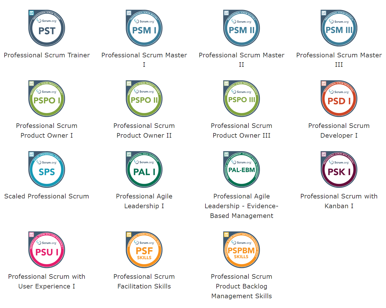 El curso Incluye Dos Intentos para el examen de certificación Professional Scrum Master I y un 40% de descuento en el examen Professional Scrum Master II de Scrum.org una vez aprobado el PSM I