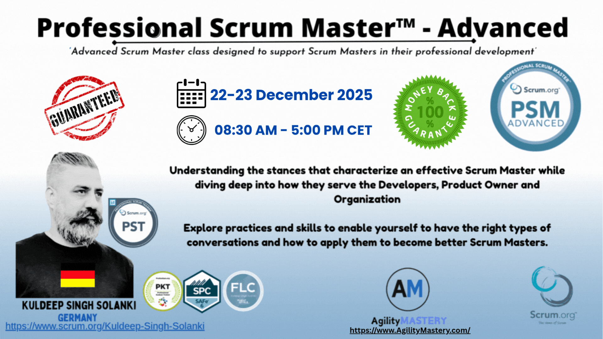 - ALUMNI DISCOUNT on upcoming Agility Mastery trainings with Kuldeep Singh Solanki