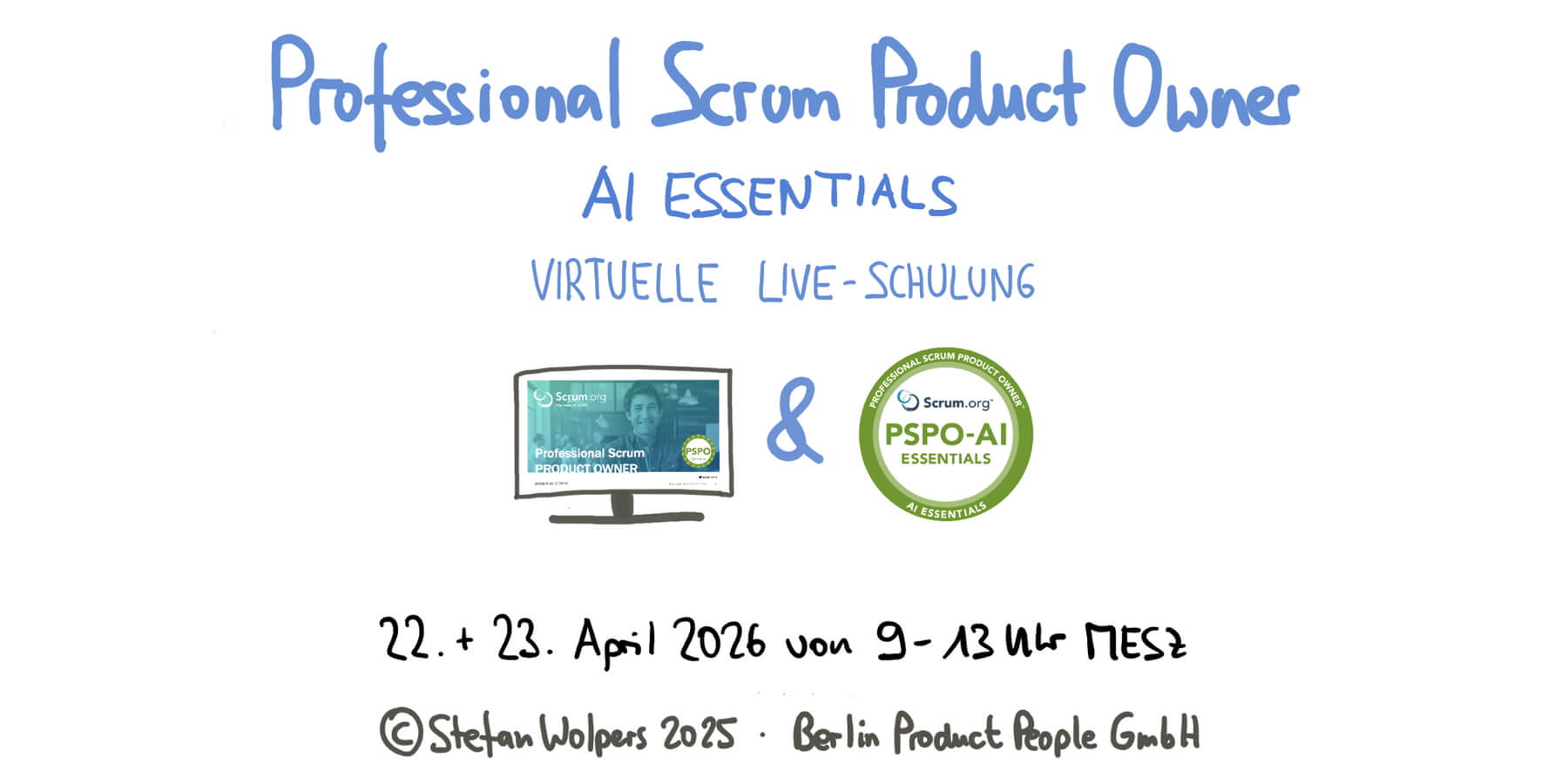 👉 Jetzt buchen: 🖥 🇩🇪 Professional Scrum Product Owner - AI Essentials Schulung mit Zertifikat — Online: 22. und 23. April 2026. (Buchungen sind auch direkt per E-Mail möglich, falls Ihr Einkaufsprozess die Onlinebuchung nicht zulässt.)