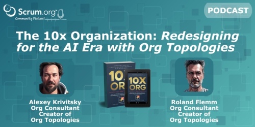 Hello and welcome to the scrum.org community podcast. I'm your host, Dave West, CEO here@scrum.org in today's podcast, we're talking about enterprise agility with org topologies. Org topologies is an approach that helps leaders evaluate and then align their structure so they can stay relevant, deliver the right outcomes and remain fit for purpose. So over the last few years, I've really paid a lot of attention to or topologies, you know, and saw its evolution. And the reason why is because it's a really different approach to enterprise agility, and what I really like about it, and I'm sure there's lots of other things that people like about it, it's quite a broad set of ideas, but the thing that I really like about it is it really helps you make the challenges transparent through this thing called ot mapping. And I really like that, because ultimately, transparency, I think, is at the heart of many of the challenges that we have and and I really like that. So there's a book just about to, or might be just published. I saw an early copy of it, so I'm I'm in the know, so I thought that would be a great opportunity for you all to hear from the authors of org topology. So I've invited them to the podcast. Welcome to the show. Alexi krivichki, Alexi and Roland phlegm welcome to the podcast, gentlemen,
