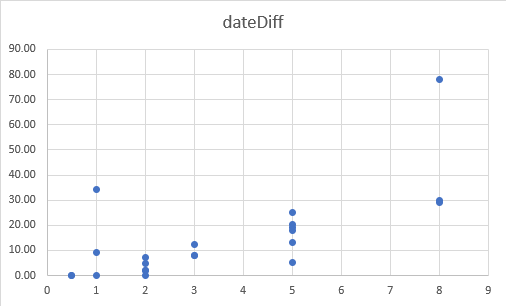 For the last year, I’ve looked at the relationship between cycle time and story points. In 75% of my cases, I get a chart similar to the following one where PBIs of 1, 2 or 3 pts all land in the same cycle time range. In the following chart, I’ve compared the story points of PBIs on the X-axis with their cycle time, from In Progress to Done, on the Y-axis.