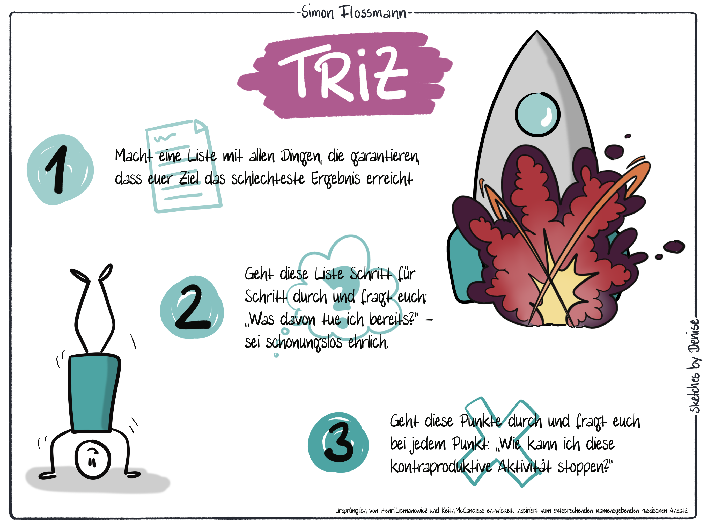 Die Idee dahinter wird manchmal auch „Kopfstand-Methode“ genannt. Es geht darum, das Worst-Case-Szenario zu entwerfen und dann durch kritische Selbstreflexion Verbesserungen zu finden, damit es nicht zu diesem Szenario kommt.